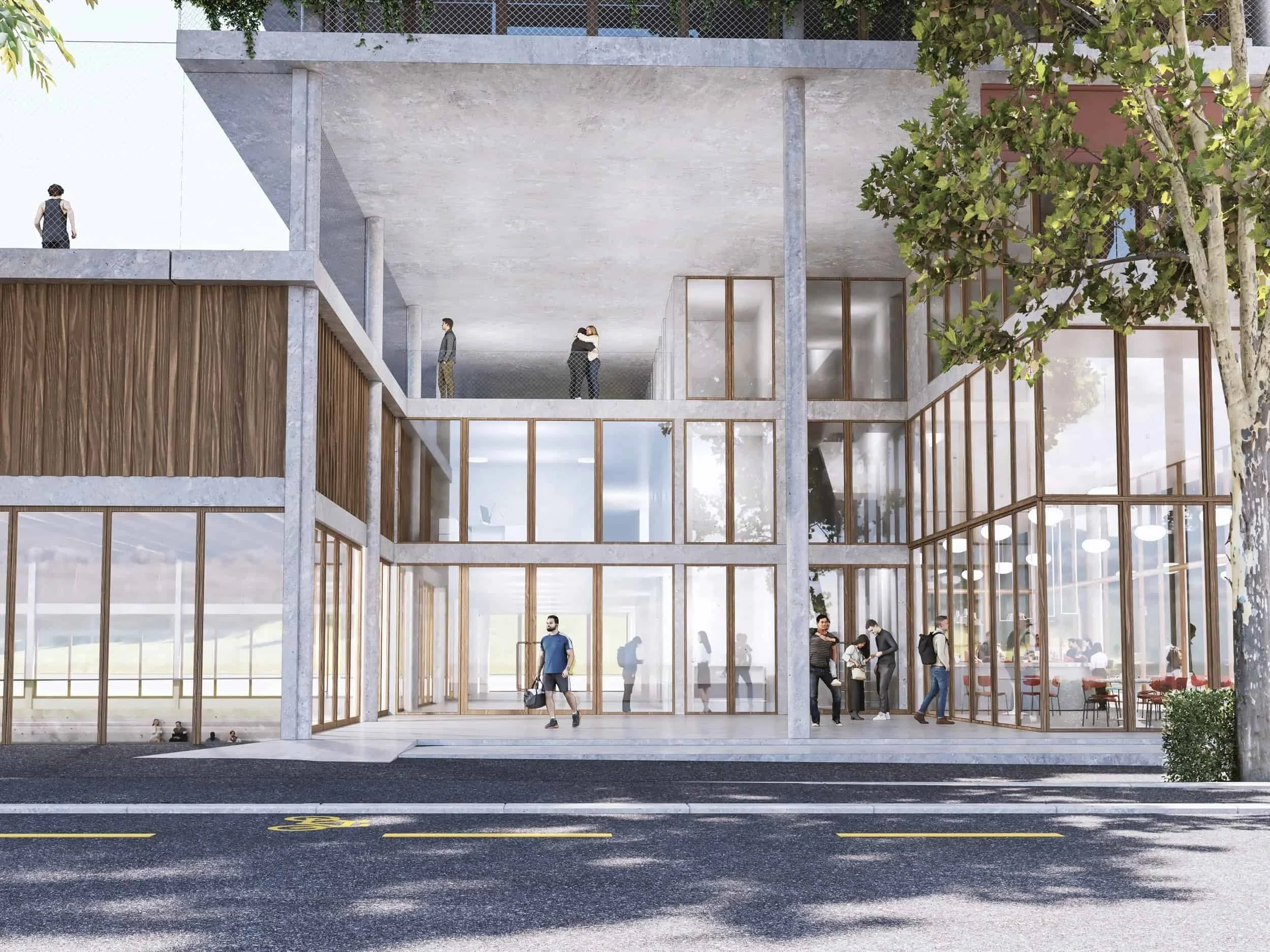 Ein öffentlich zugängliches Restaurant ist Teil der Sportanlage und ersetzt den bestehenden Gastronomiebetrieb.